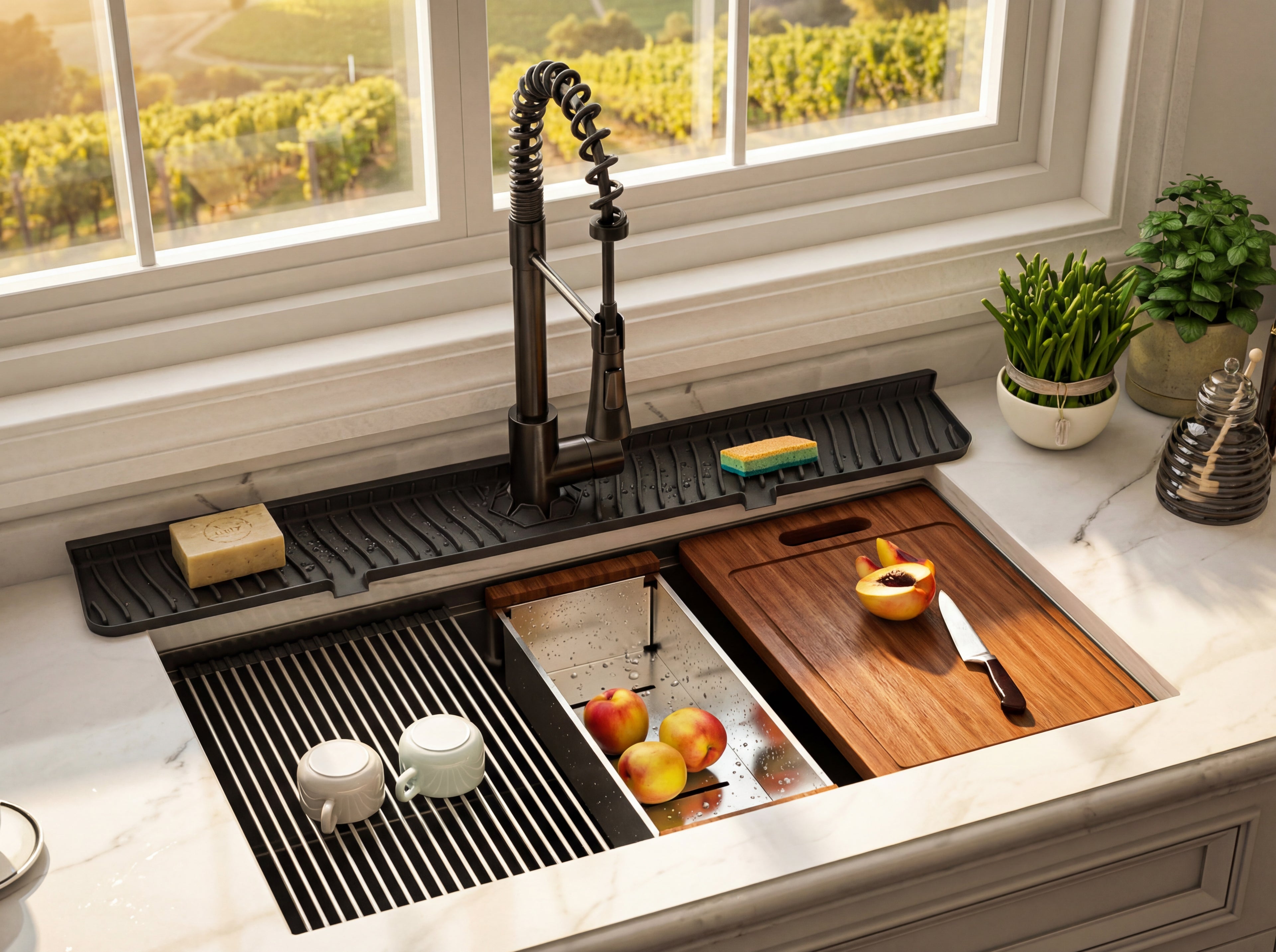 Le tapis Pratikéo protège votre évier des éclaboussures, garde votre plan de travail propre et vous fait gagner du temps au quotidien.